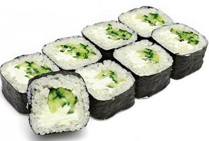 Рис, нори, огурец, творожный сыр.
