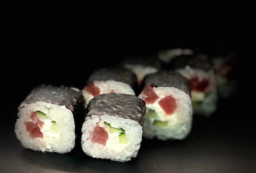нори,рис,тунец.огурец,сливочный сыр