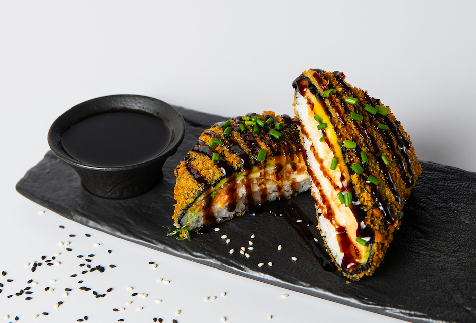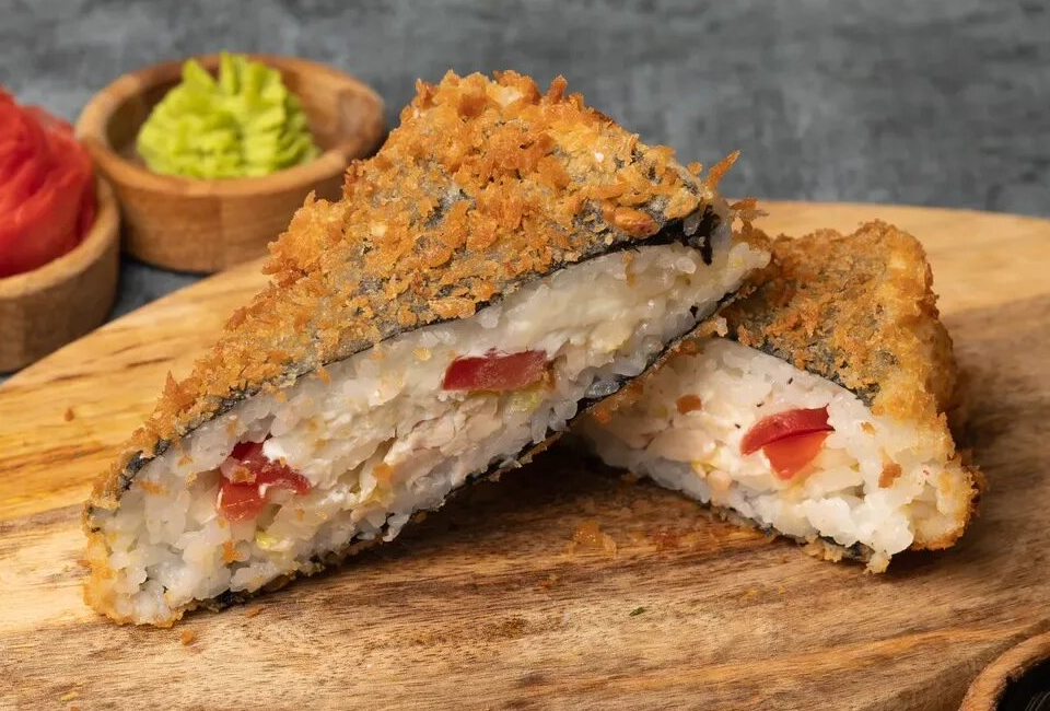 нори,рис,сливочный сыр,огурец,кляр,Панко сухари